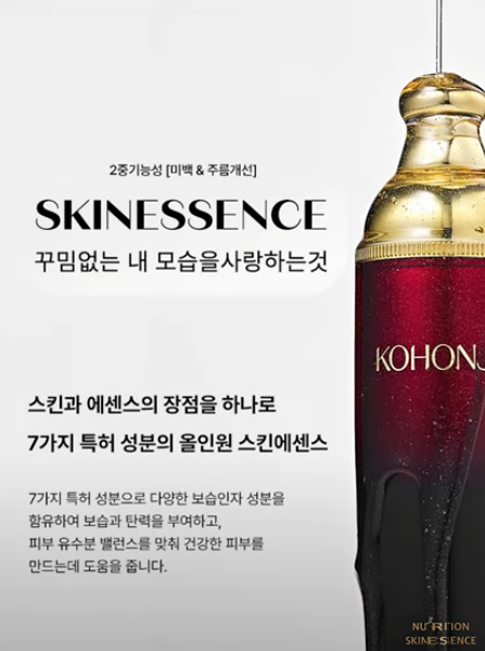 고혼진 뉴트리션 스킨 에센스는 고혼진의 대표적인 기초 케어 제품 중 하나로, 피부에 풍부한 영양과 수분을 공급하여 건강한 피부 바탕을 만들어주는 데 도움을 줍니다. 피부 본연의 힘을 강화하고 다음 단계 제품의 흡수를 돕는 부스팅 에센스 역할을 합니다.