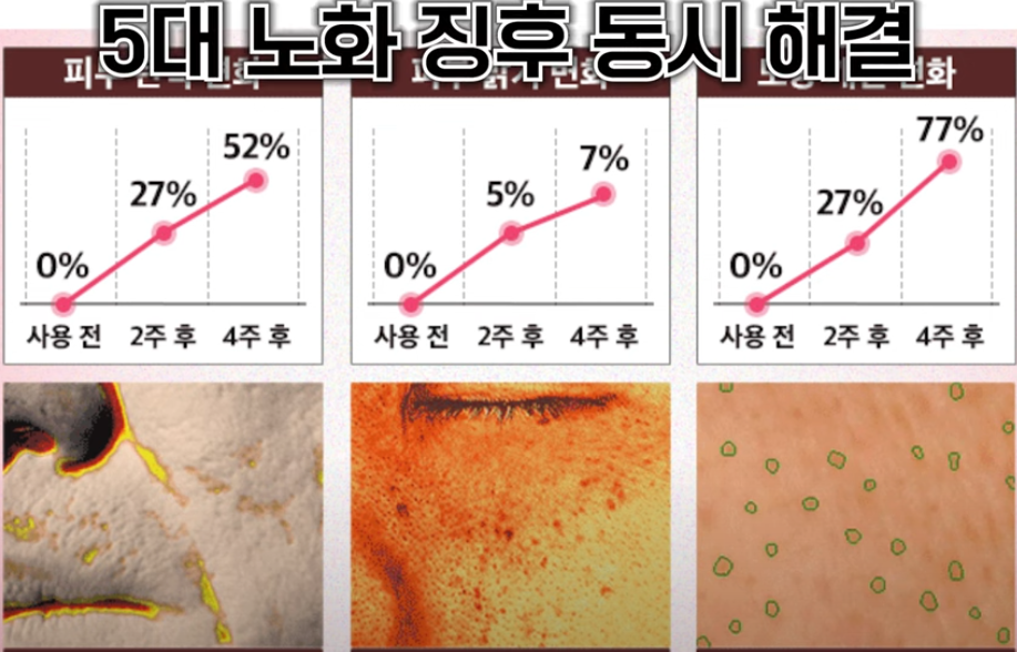 - 5대 노화 징후 해결: 5대 노화 징 후 (주름, 미백, 탄력 저하, 건조함, 피부 장벽 약화)를 한 번에 해결하여 건강하고 탄탄한 피부를 만들어줍니다.