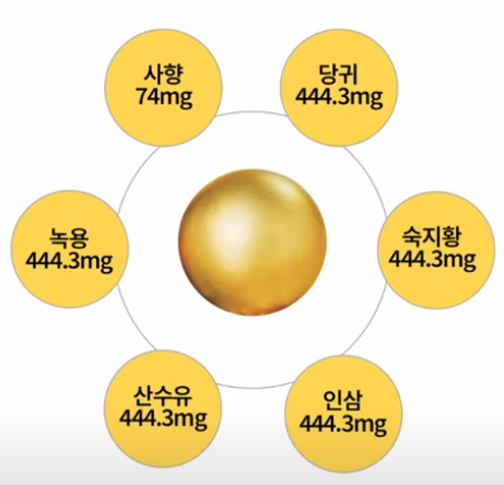 - 녹용, 당귀, 산수유, 그리고 핵심 약재인 사향을 기본으로 구성되어, 타고난 원기를 튼튼하게 하고 수승화강(水升火降)을 도와 오장을 편안하게 하며 만병을 예방하는 데 효과적입니다.
