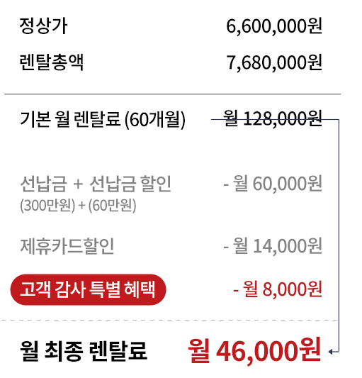 - 렌탈 총액 (60개월): 7,680,000원