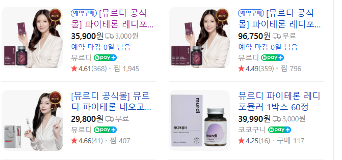 여성 건강을 위한 필수 아이템, 뮤르디 파이테론 레디포뮬러를 다양한 구성과 합리적인 가격으로 만나보세요.