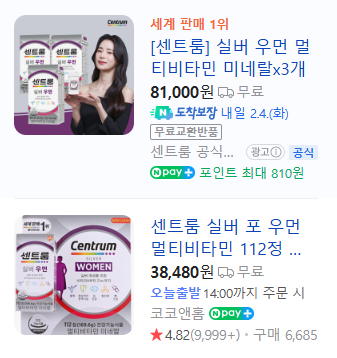 - [센트룸] 실버 우먼 멀티비타민 미네랄 (3개): 81,000원