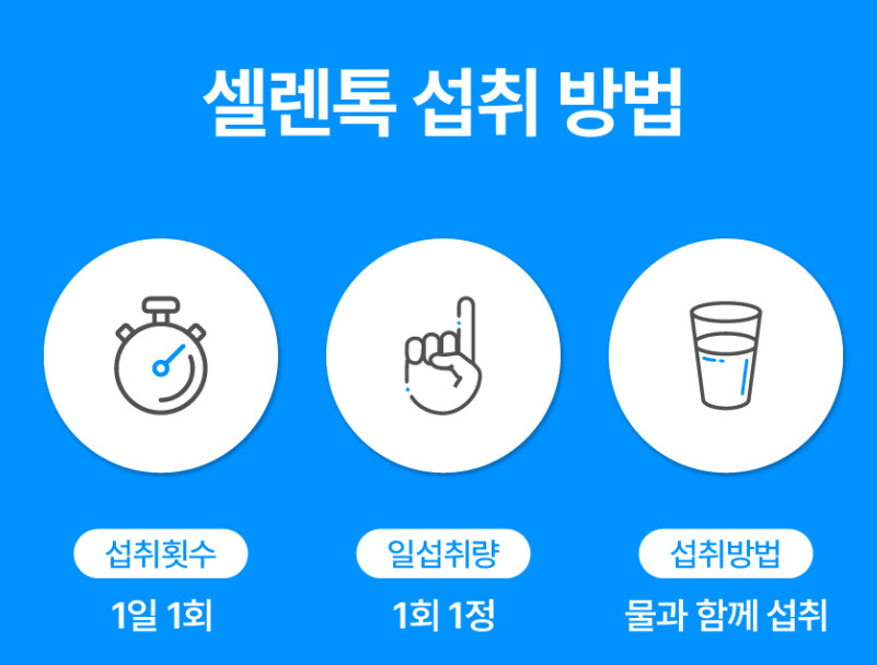 셀렌톡은 건강 관리에 도움을 줄 수 있는 보조적인 수단이며, 제품에 지나치게 의존하는 것은 바람직하지 않습니다. 규칙적인 생활 습관, 균형 잡힌 식단, 그리고 꾸준한 운동을 통해 스스로의 건강을 관리하는 것이 가장 중요합니다. 특히 흡연하시는 분이라면 셀레늄 섭취보다 금연이 건강을 위한 최우선 선택이라는 것을 잊지 마세요.