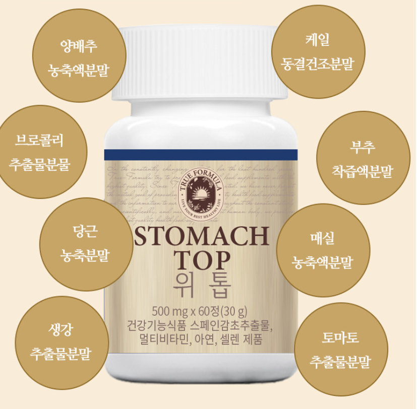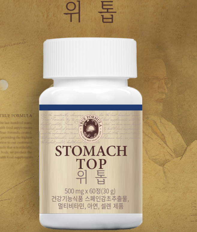 트루포뮬러 위톱은 스페인 감초 추출물을 주성분으로 하여 위 점막 보호, 헬리코박터 파일로리균 억제, 소화 기능 개선 등 위 건강에 도움을 주는 건강기능식품입니다.