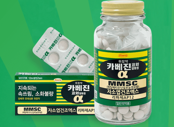 카베진은 일본의 코와 제약이 개발한 제품으로, 양배추에서 추출한 MMSC를 핵심 성분으로 하는 종합 위장약입니다. 단순한 제산제를 넘어 위 점막 보호, 소화 촉진, 위장 운동 개선 등 다양한 기능을 통합적으로 제공합니다.